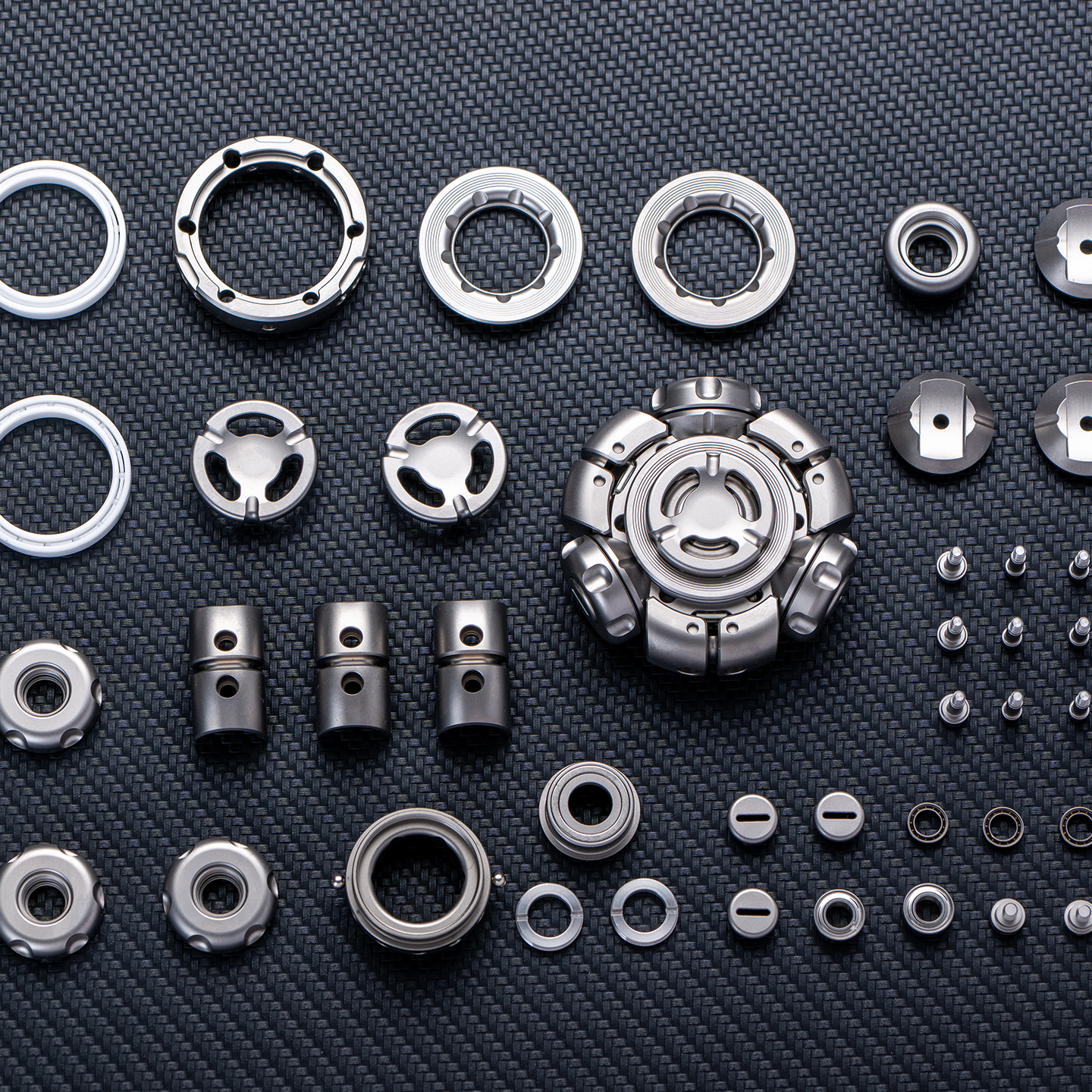 CNC-machined from high-grade metal alloy, with an industrial aesthetic and futuristic design, providing a perfectly balanced spin and tactile ratchet feel.