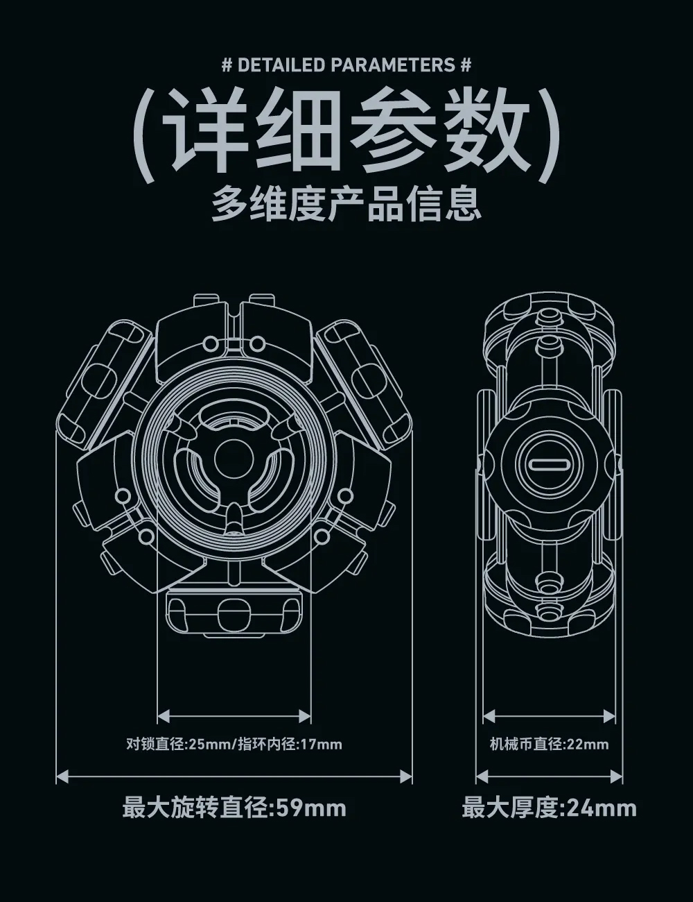 Comes with three interchangeable mechanical coins (Segmented / Dense / Ultra-Dense) to create different clicking feedback and rotation feel.